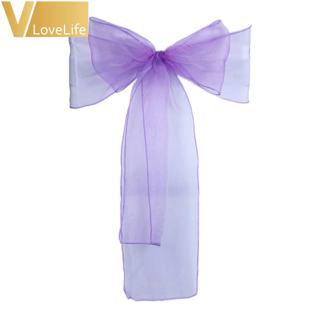 100pcs Chair Sashes Organza Chair Bows Wedding Party Supplies Christmas Valentines Decor Sheer Organza Fabric Chair Decoration – Lavender
