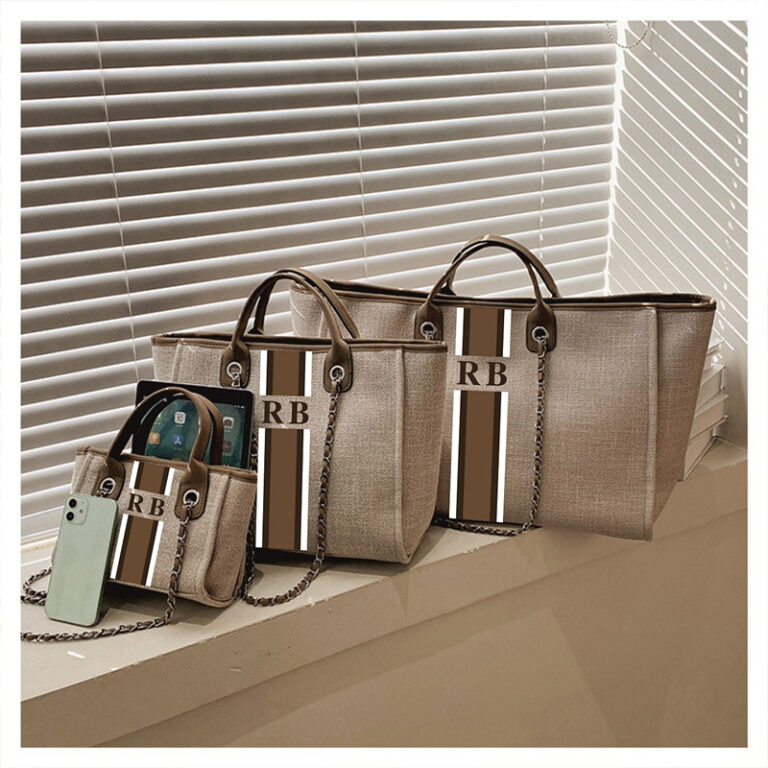 Personalized Monogrammed Canvas Travel Tote Bags, Custom striped with initials Mommy Medium Mini Shopping Jute Beach Tote Bag – Custom medium black