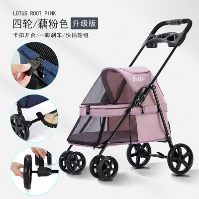 Pet Stroller Lightweight Dog Cat Cart Four-wheel Shock Absorption Folding Dog Transport Cart Breathable Stroller Outdoor