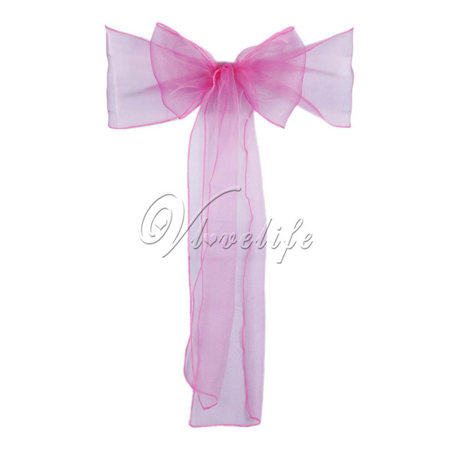 100pcs Chair Sashes Organza Chair Bows Wedding Party Supplies Christmas Valentines Decor Sheer Organza Fabric Chair Decoration – Fuchsia