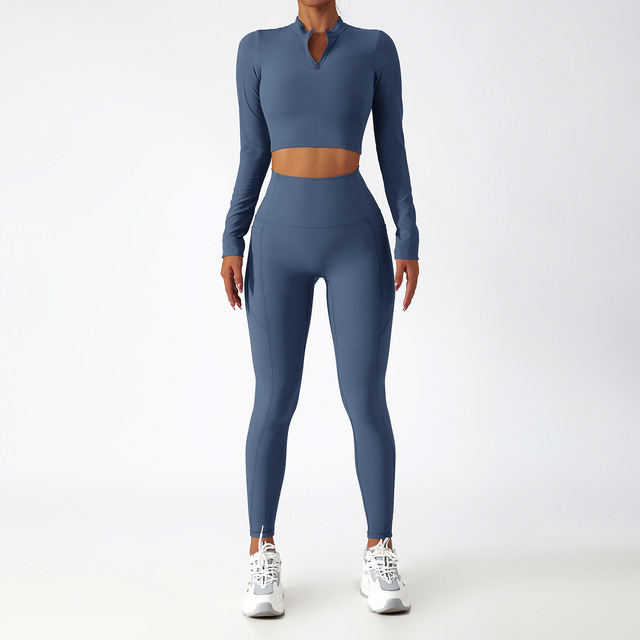 Yoga Set 2 Piece Women Sportswear Workout Clothes Women Sport Sets Suits For Fitness Long Sleeve Seamless Gym Push Up Leggings