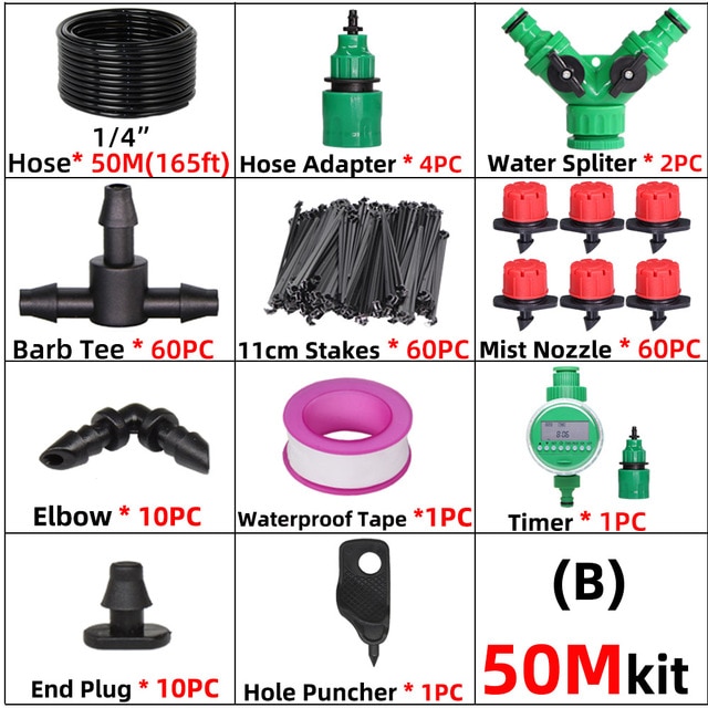 50M Smart Garden Watering System 4/7mm Hose Adjustable Dropper Kit Self Automatic/Wifi Compatibl Timer Micro Drip Irrigation Set – BX50M-Timer