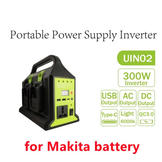 300W4 Dual Sine Wave Inverter For Makita /Milwaukee 18v Battery To AC 110V/220V USB PD3.0 Tpye-C Power Bank Converter with Light – 220V without battery