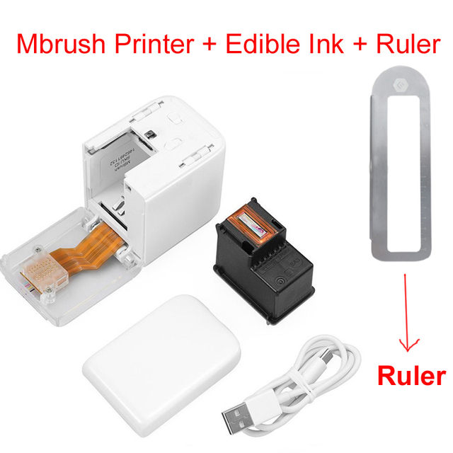 Mini Handheld Mbrush Food Printer Portable Inkjet Pen Print Custom DIY Coffee Printing Food Printer with Edible Food Ink – White add Ruler