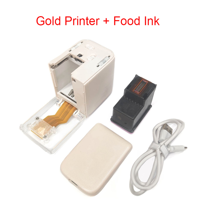 Mini Handheld Mbrush Food Printer Portable Inkjet Pen Print Custom DIY Coffee Printing Food Printer with Edible Food Ink – Gold Food Set
