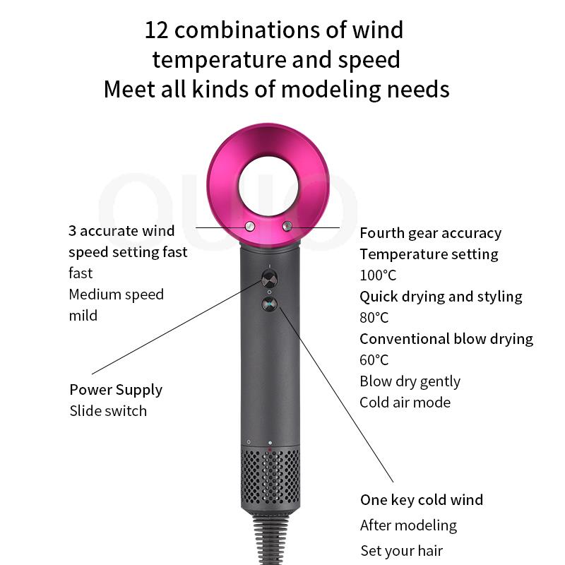 Leafless Hair Dryer New Professional With Flyaway Attachment Negative Ionic Premium Hair Dryers Multifunction Salon Style Tool