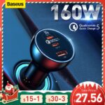 Baseus 160W Car Charger QC 5.0 Fast Quick Charging PPS PD3.0 USB Type C Car Phone Charge For iPhone 14 13 12 Pro Laptops Tablets