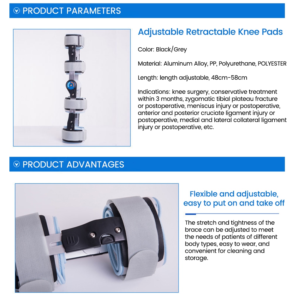 1 Piece Knee Joint Brace Support Orthosis Medical Ligament Sport Injury Splint Knee Fracture Protector Adjustable Fracture Brace