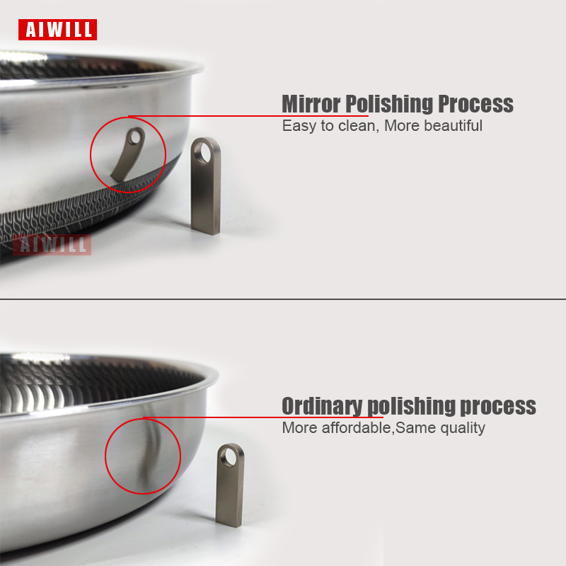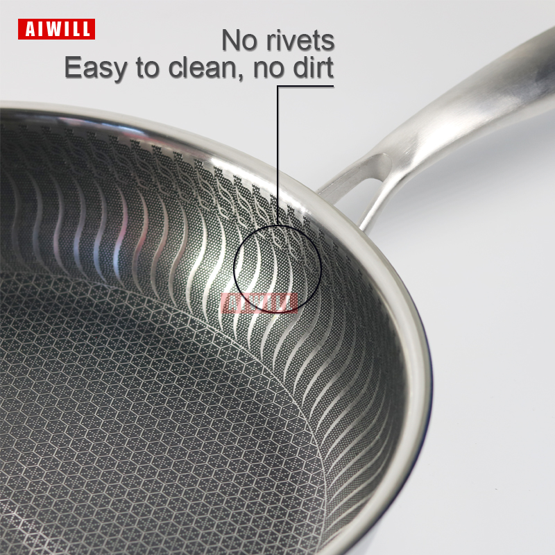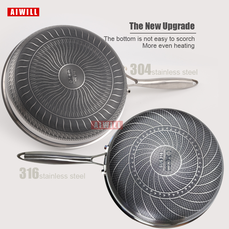 AIWILL Kitchen Quality 316 /304 Stainless Steel Frying Pan Nonstick Pan Cooking Fried Steak Pot Electromagnetic Furnace General