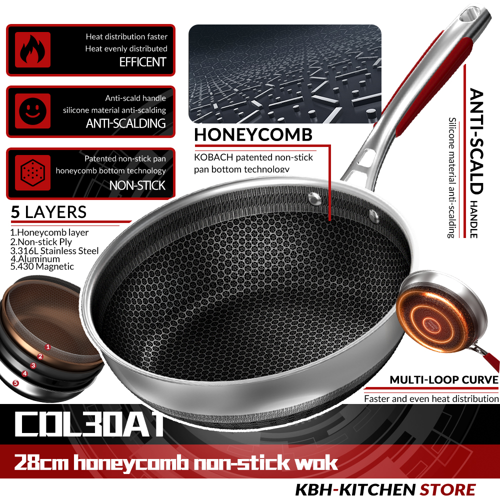 KOBACH Frying Pan 28cm Kitchen Nonstick Pan 316L Stainless Steel Pan Nonstick Wok Electric Induction Pan
