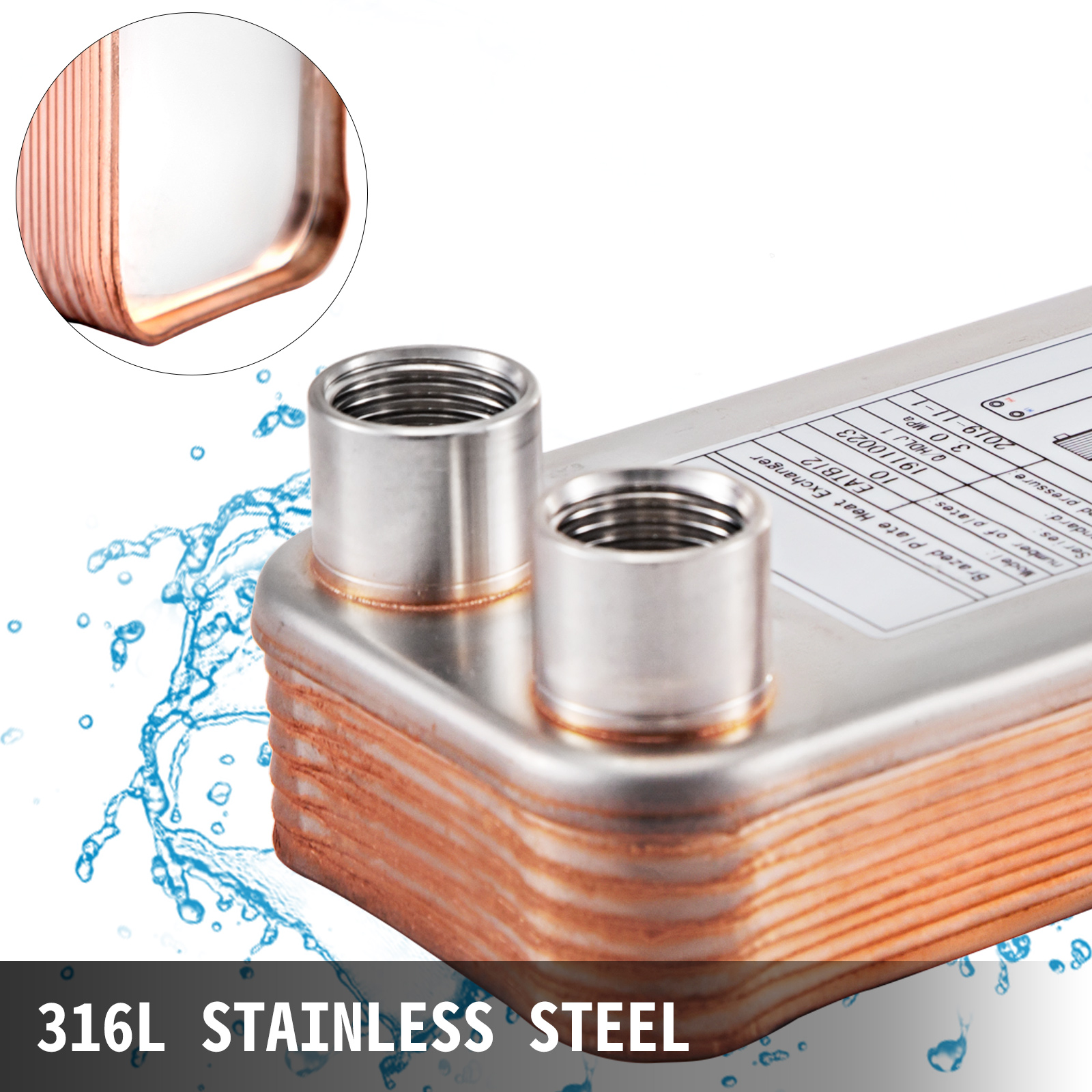 VEVOR 30 40 60 Plates Heat Exchanger Wort Chiller Stainless Steel Homebrew Brewing Beer Cooler Counterflow Chiller Water Heating