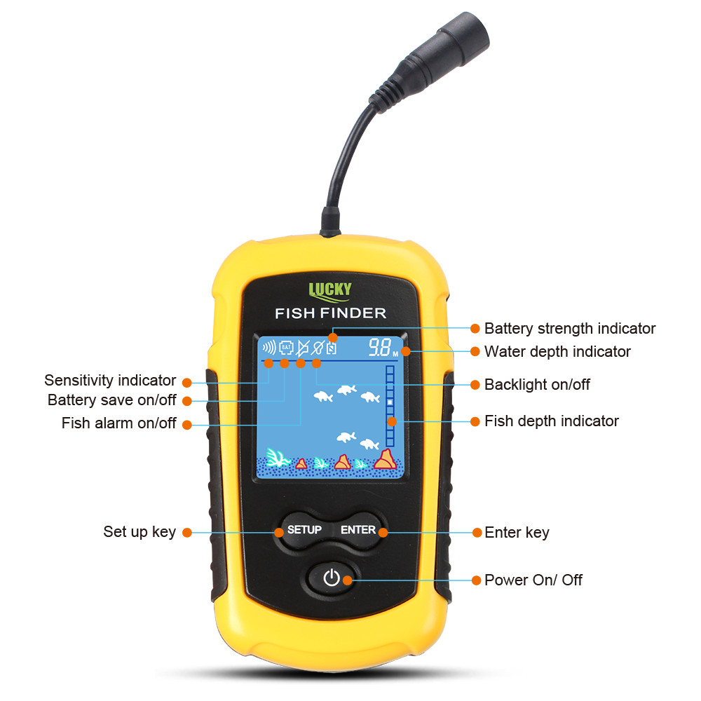 FFC1108-1 Alarm 100M Portable Sonar Fish Finders Fishing lure Echo Sounder Fishing Finder Alarm Transducer Lake Sea Fishing