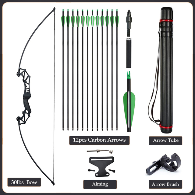20/30/40/50lbs Archery Bow Recurve Take Down Straight Bow 12pcs Mixed Carbon Arrows Quiver Outdoor Sport Shooting Practice Bow