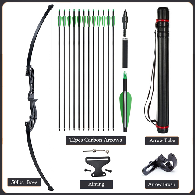 20/30/40/50lbs Archery Bow Recurve Take Down Straight Bow 12pcs Mixed Carbon Arrows Quiver Outdoor Sport Shooting Practice Bow