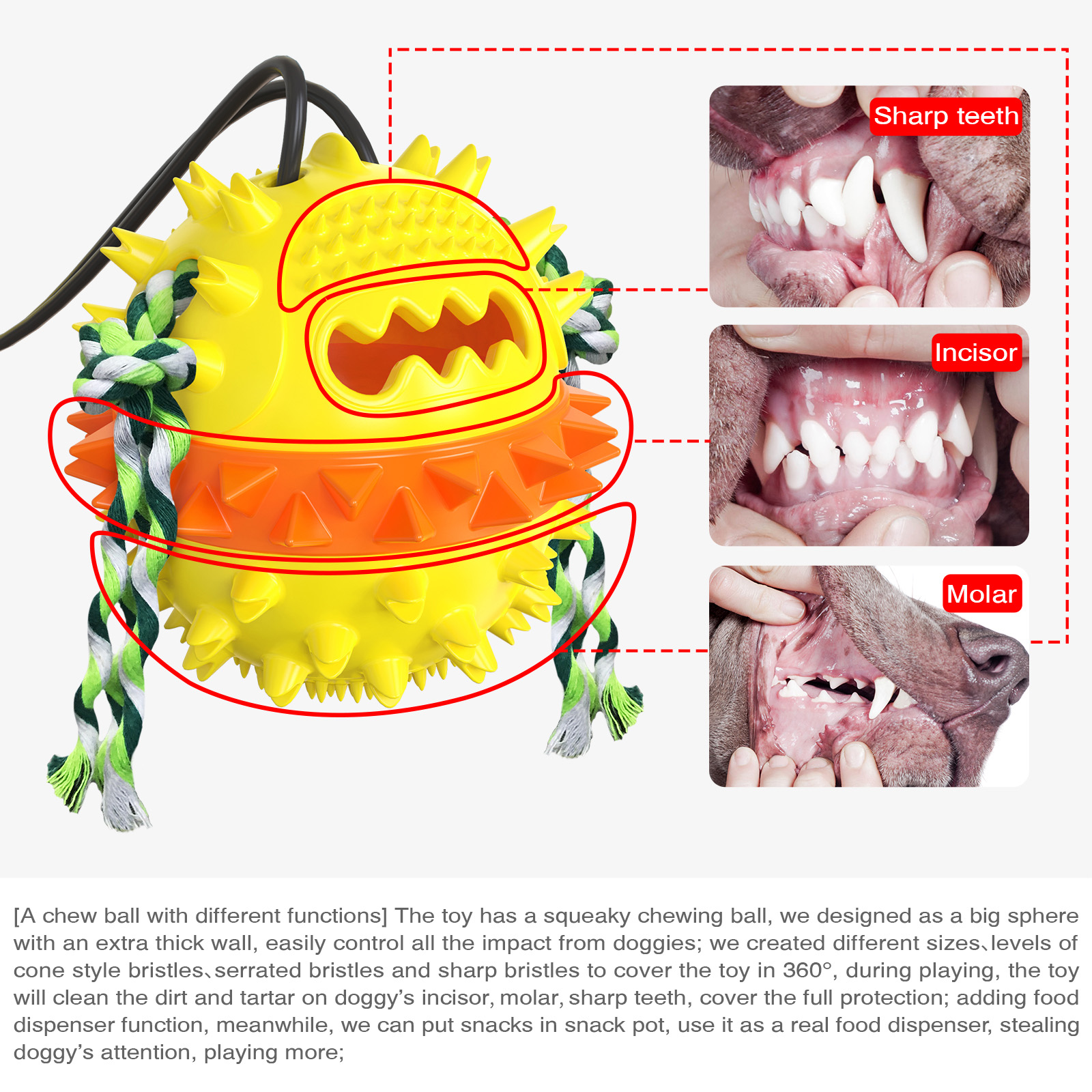 Dog Toy Tug of War Squeak Vacuum Cup Pull Rope Ball Leakage Feeding Teeth Cleaning